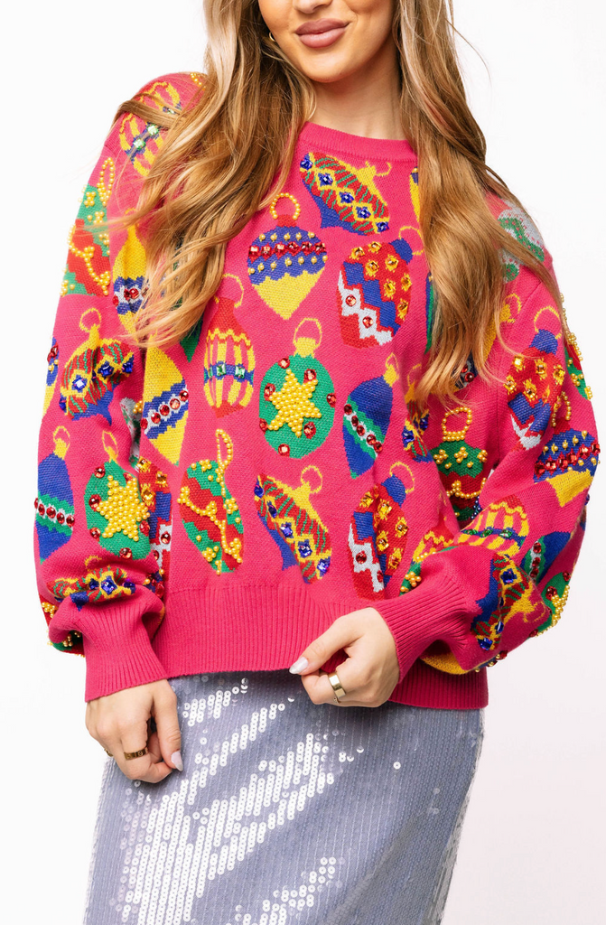Queen Of Sparkles: Pink Jeweled Ornament Sweater