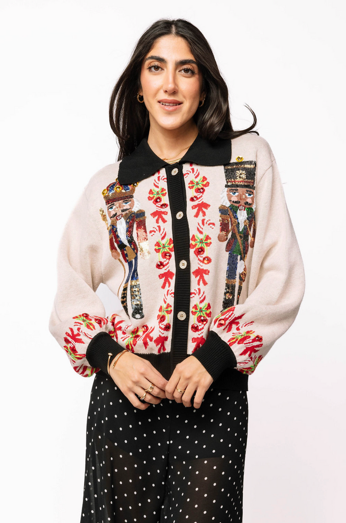 Queen Of Sparkles: Collar Nutcracker & Candy Cane Cardigan