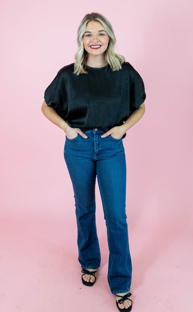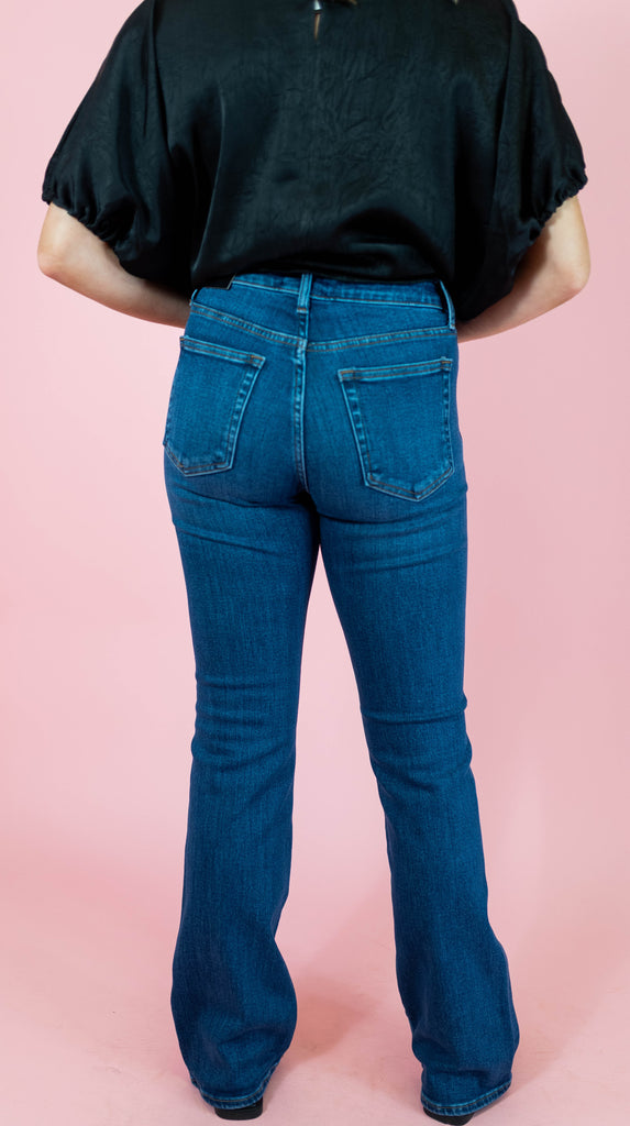 Elevate your everyday look with our High Waisted Seamed Bootcut Jeans in dark denim. Designed to flatter your silhouette, the high waist provides comfortable support while the tailored seams create a sleek, elongated effect. The bootcut style adds a classic touch that pairs effortlessly with boots or heels, perfect for both casual and dressier occasions. Durable dark denim ensures long-lasting wear and versatile style. Embrace a confident, timeless wardrobe staple that enhances your shape while keeping you comfortable all day.