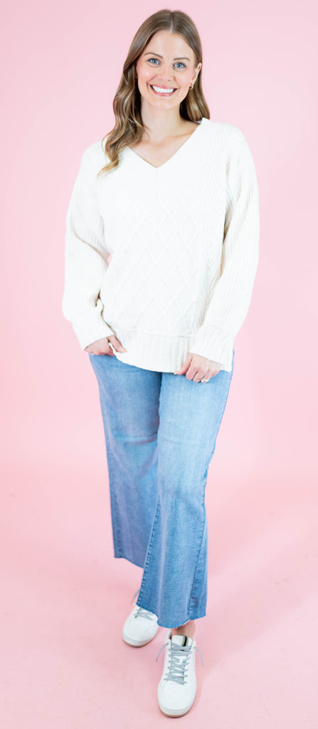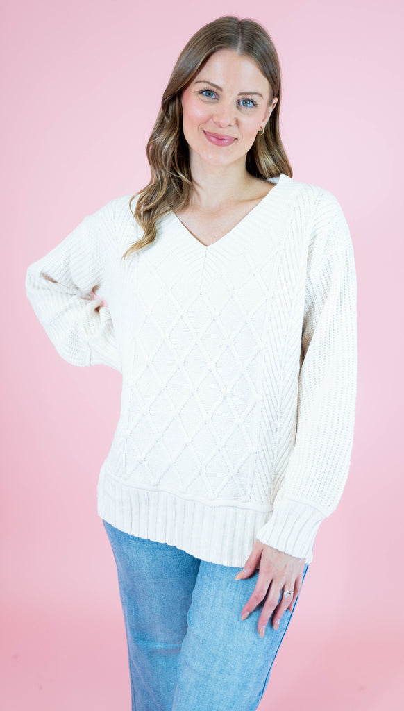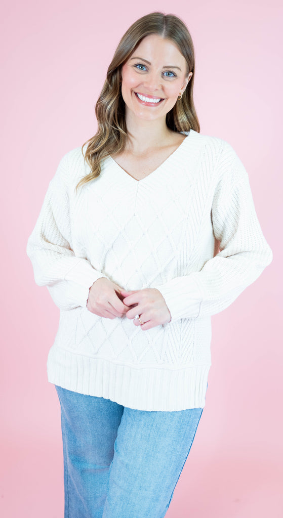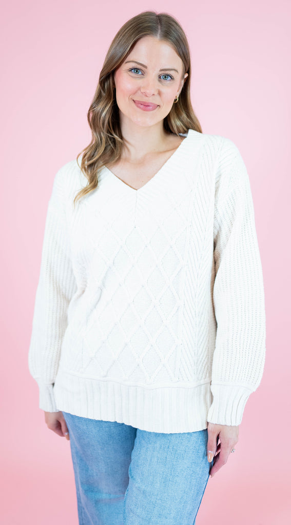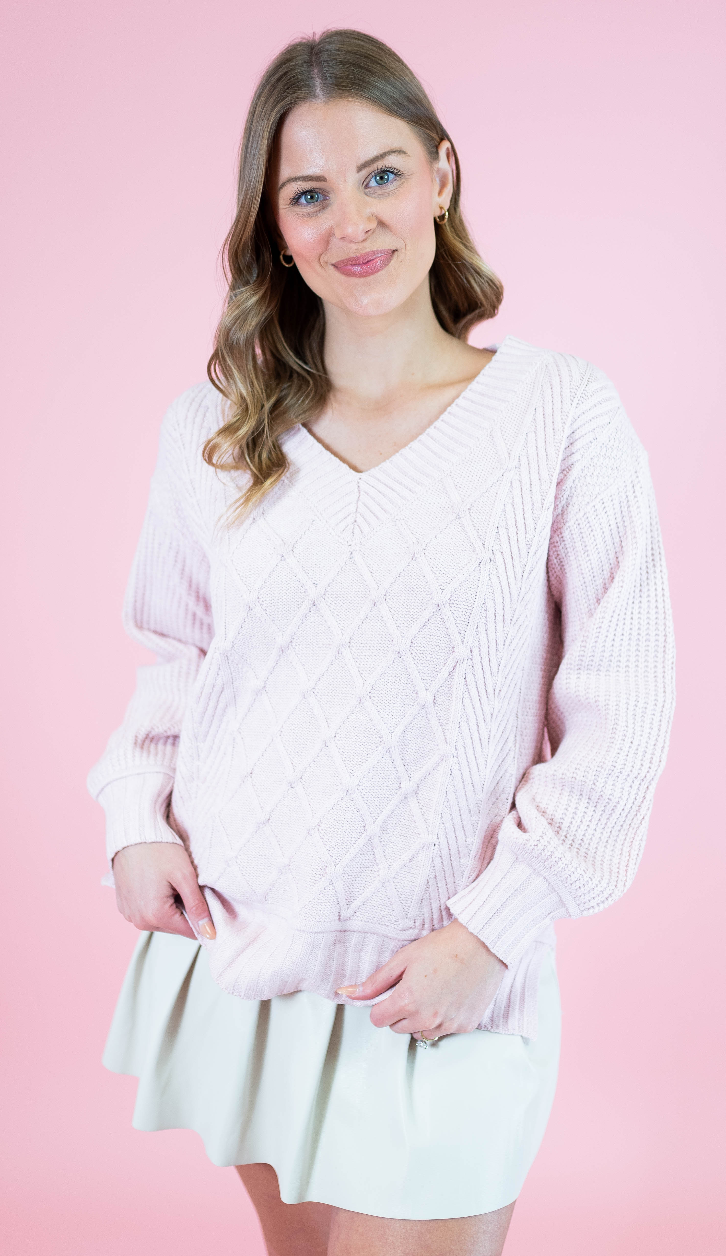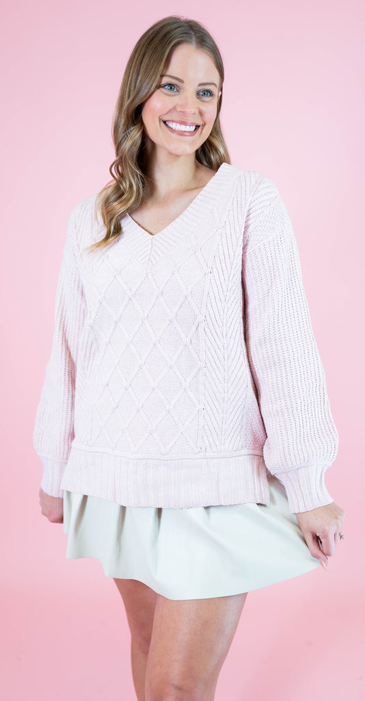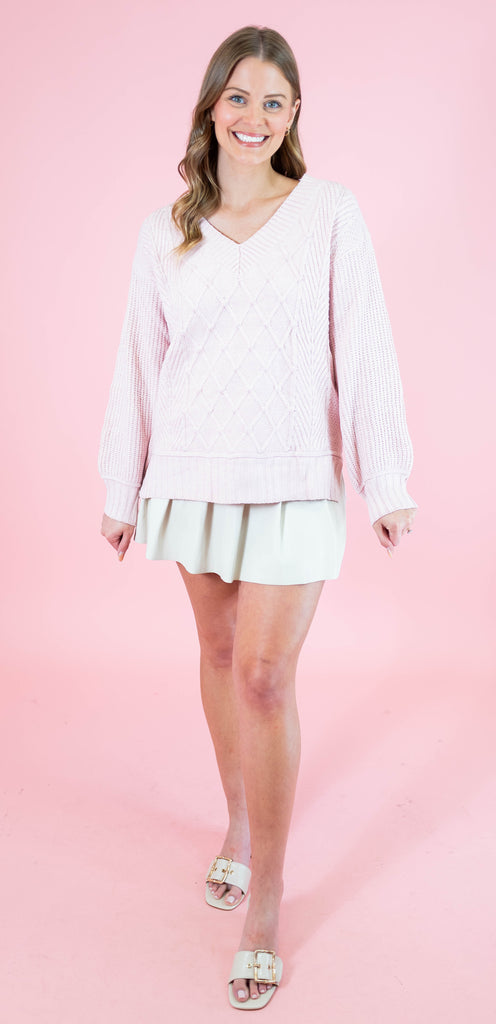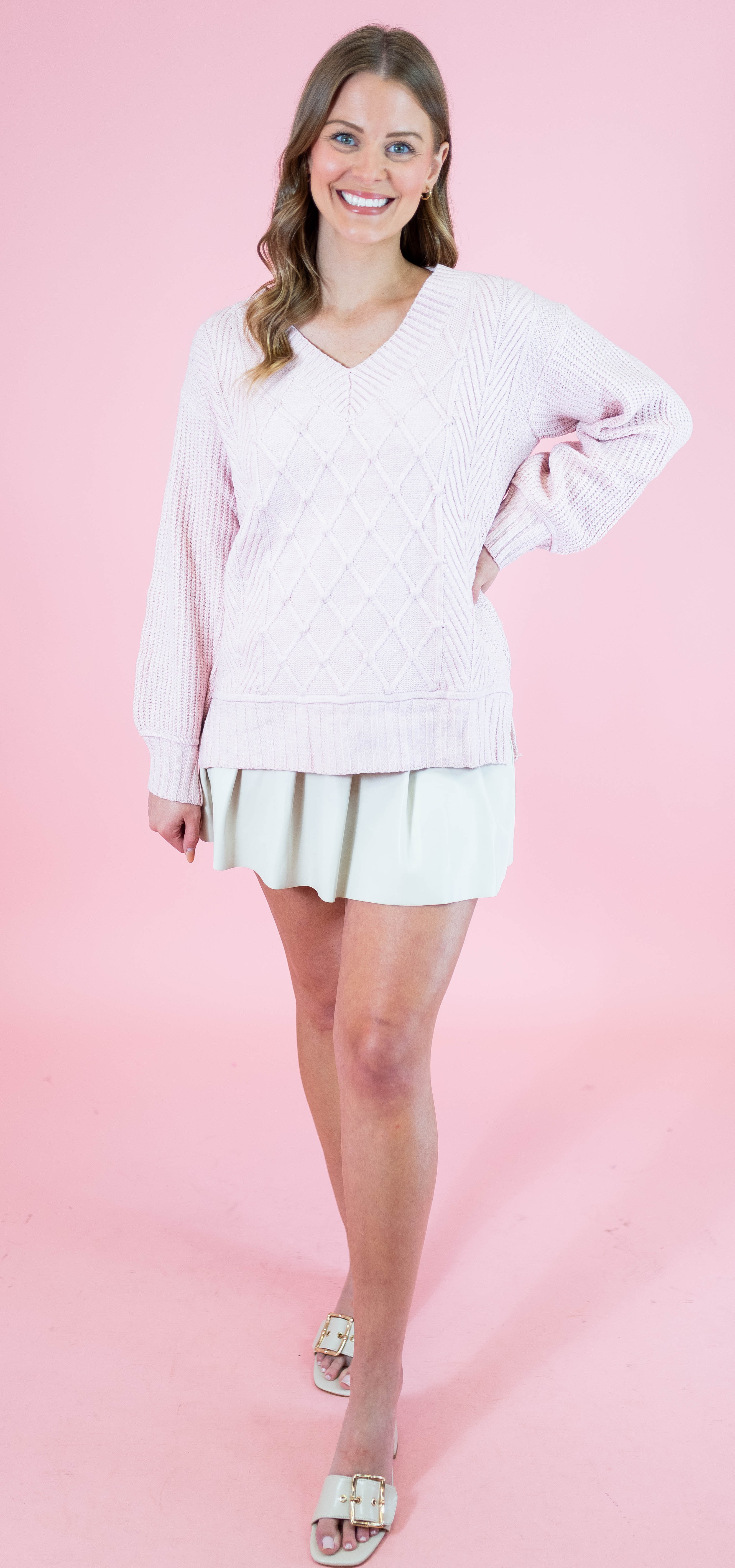 Elevate your everyday wardrobe with this timeless Long Sleeve V-Neck Cable Sweater, designed for effortless sophistication. The classic cable knit texture adds visual interest and dimension, while the flattering V-neckline creates a refined silhouette perfect for layering or wearing solo. Available in versatile cream and rose pink, each shade offers a distinct aesthetic—choose cream for a crisp, neutral foundation or rose pink for a subtle pop of color. Crafted for comfort and durability, this sweater transitions seamlessly from casual weekends to polished office settings, making it an essential piece that works harder in your closet.
