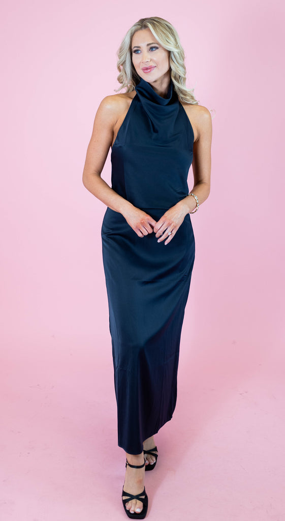 Elevate your wardrobe with the Simply Satin Cowl Halter Top, where luxurious fabric meets flattering design. The graceful cowl neckline drapes elegantly, creating a sophisticated silhouette that works beautifully for both casual outings and special occasions. Available in three timeless shades—champagne, ivory, and navy—this versatile piece pairs effortlessly with your favorite bottoms. The smooth satin finish catches light beautifully, adding an instant touch of polish to any look. Whether you're dressing up or down, this halter top delivers understated elegance with undeniable impact.