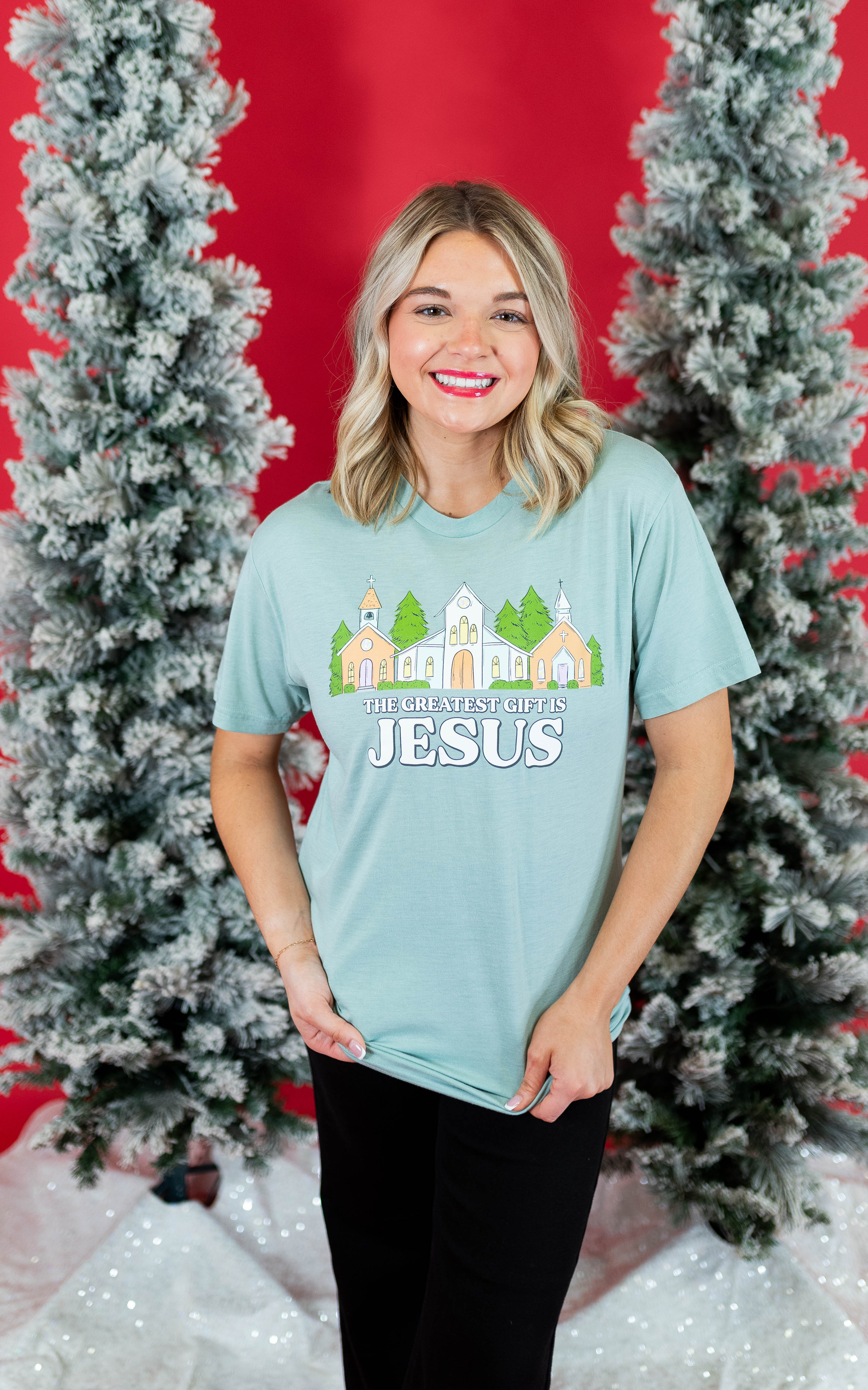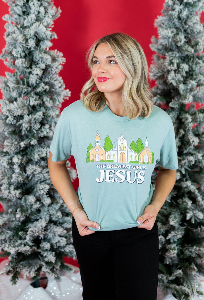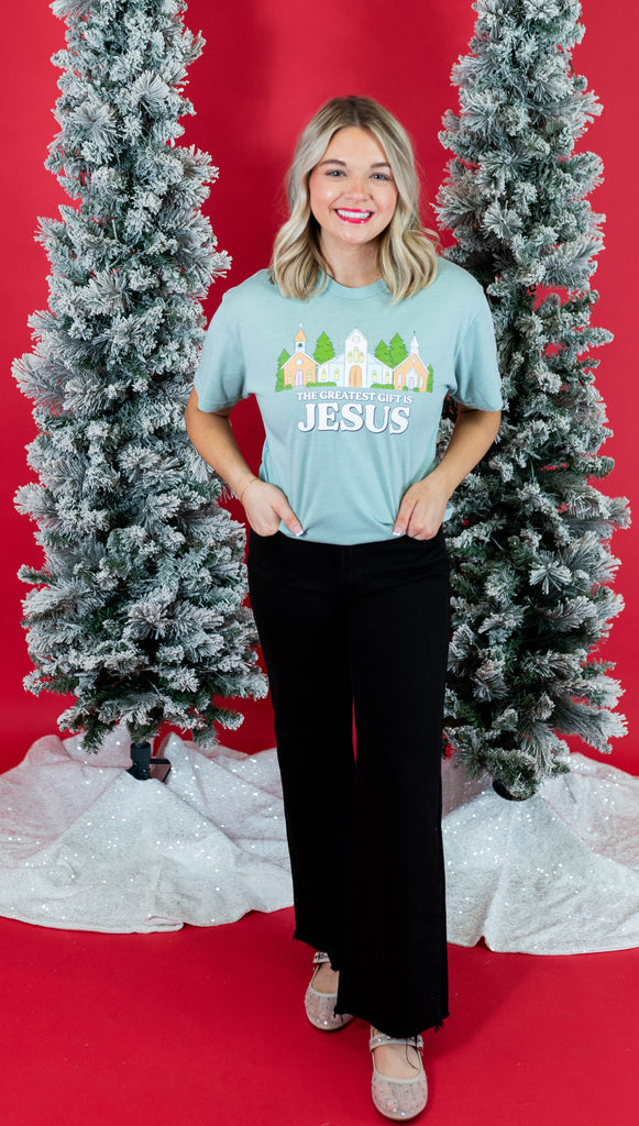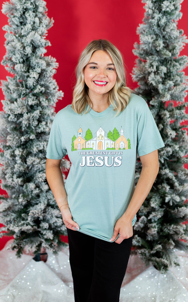 Celebrate faith and comfort with The Greatest Gift Is Jesus Crew Tee in soothing sage. Crafted for everyday wear, this tee blends soft fabric with a meaningful message, reminding you and others of the true blessing in life. Perfect for layering or solo statement style, it’s an inspiring addition to your wardrobe that spreads hope wherever you go.