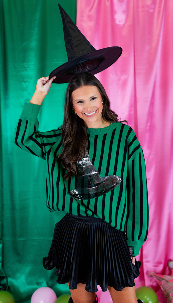 Queen Of Sparkles: Licensed Green & Black Striped Elphaba Hat Sweater
