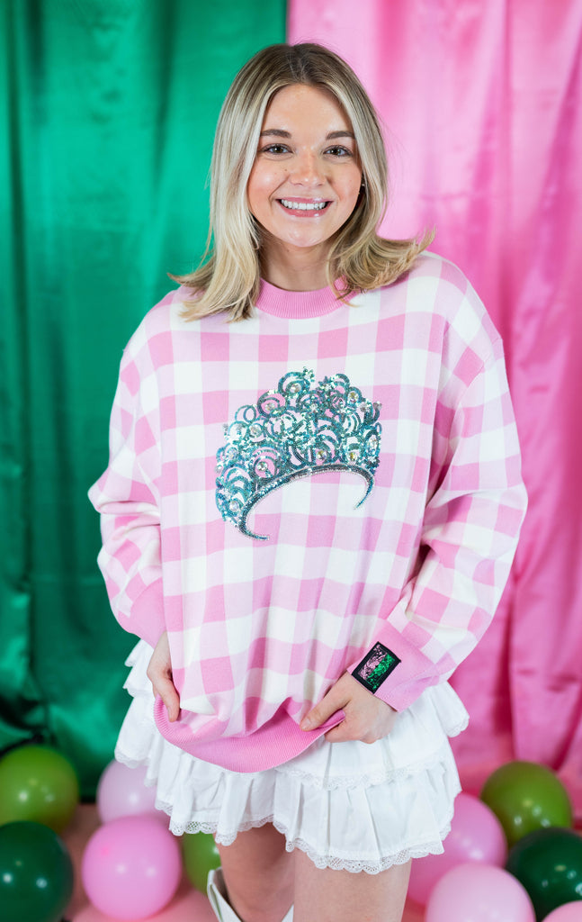 Queen Of Sparkles: Licensed Pink Gingham Glinda Crown Sweater