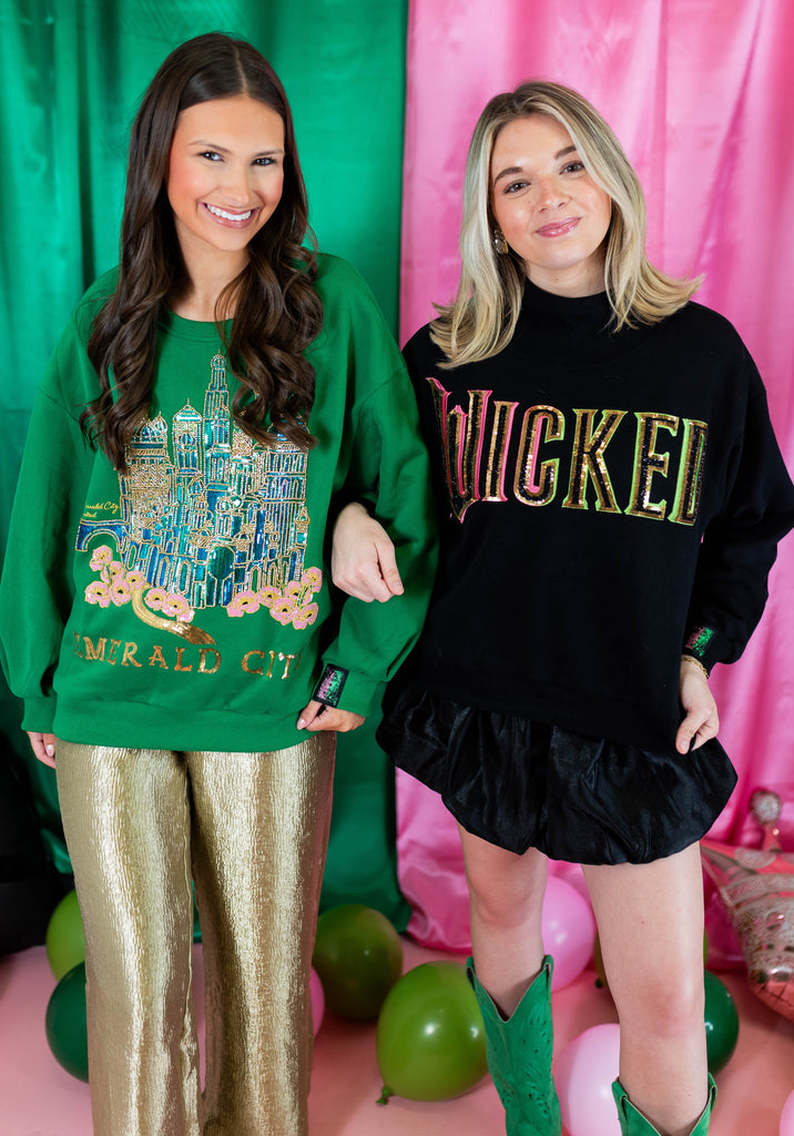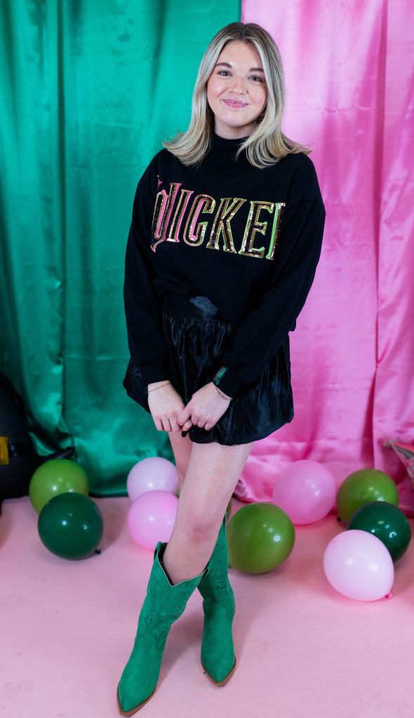 Embrace bold style with the Queen Of Sparkles Licensed Black Wicked Logo Sweatshirt from the exclusive WICKED X QUEEN OF SPARKLES collection. This striking sweatshirt combines comfort with standout design, making it perfect for showing off your unique edge. Don’t miss your chance to own this limited edition piece—it’s a must-have before it’s gone.