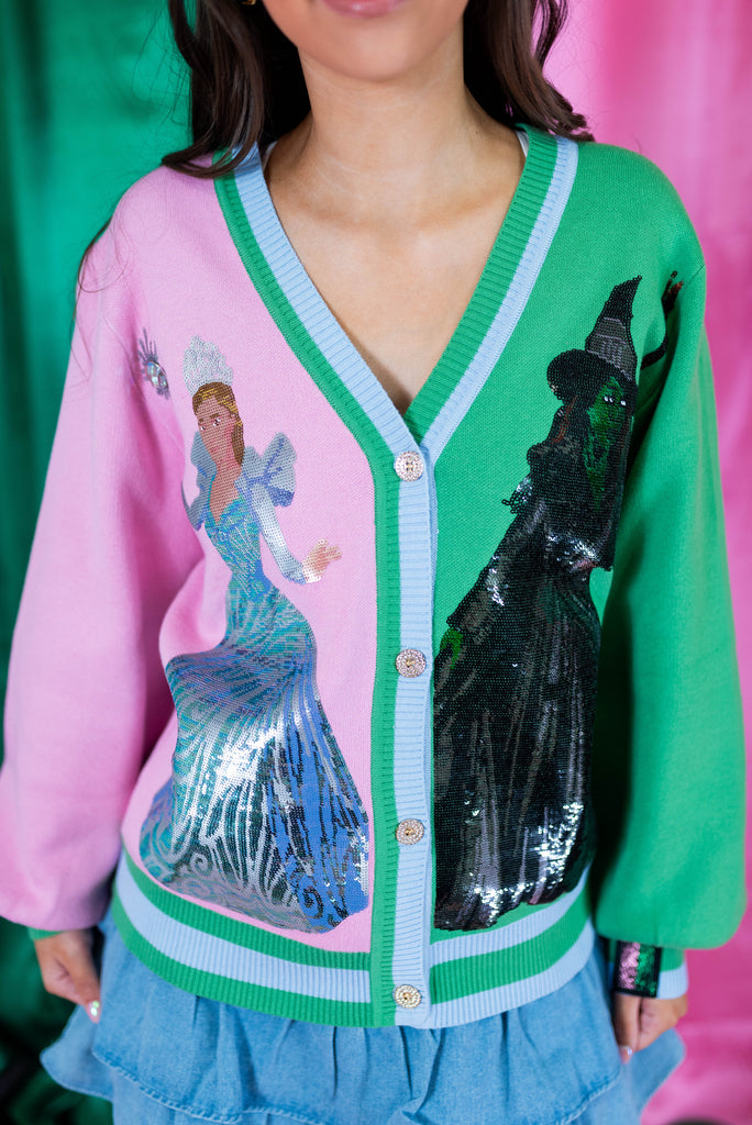 Queen Of Sparkles: Licensed Colorblock Glinda & Elphaba Button Up Cardigan