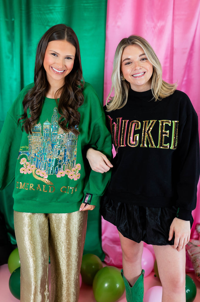 Embrace bold style with the Queen Of Sparkles: Licensed Emerald City Sweatshirt from the exclusive WICKED X QUEEN OF SPARKLES collection. This striking sweatshirt combines comfort with standout design, making it perfect for showing off your unique edge. Don’t miss your chance to own this limited edition piece—it’s a must-have before it’s gone.
