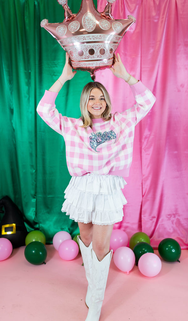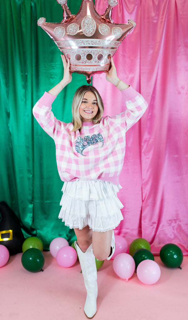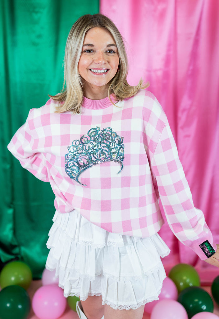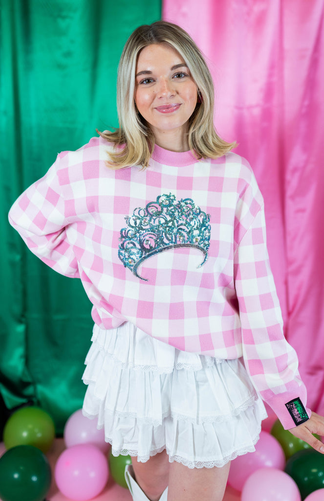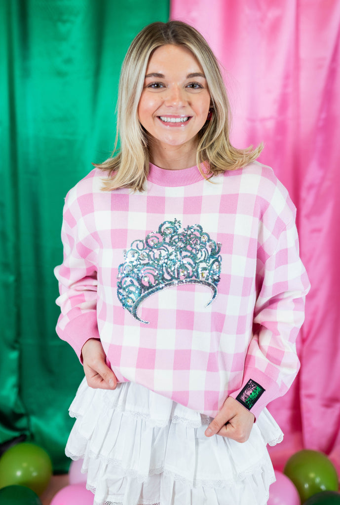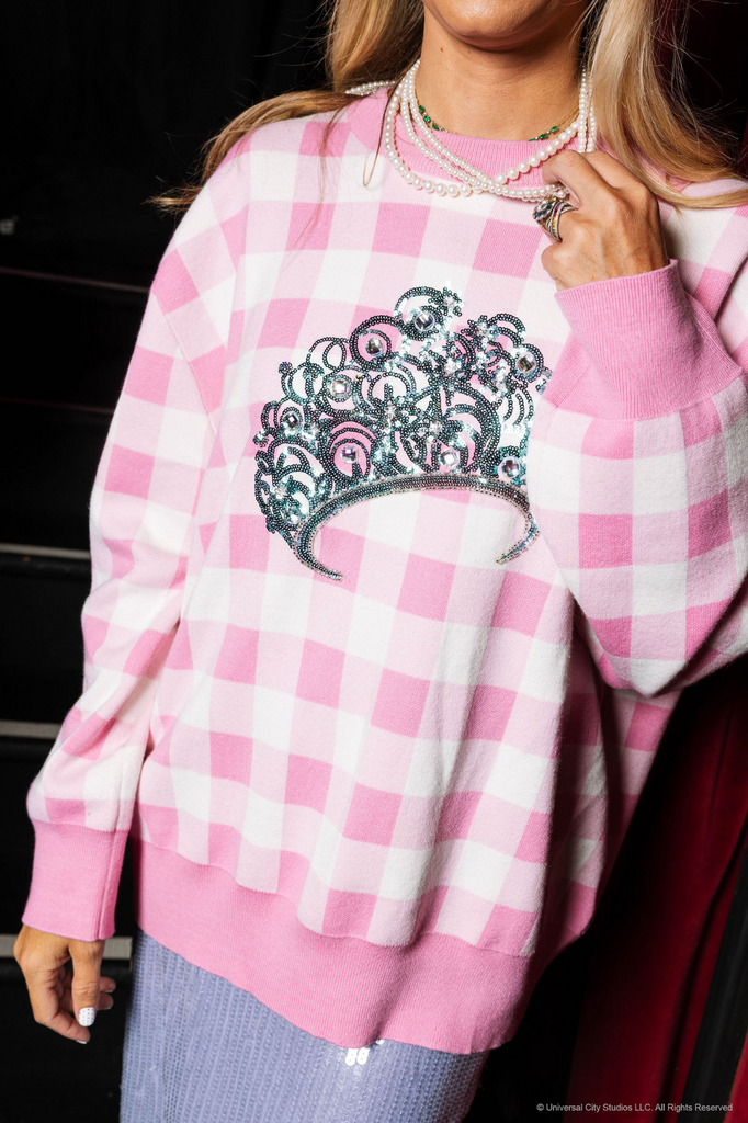 Queen Of Sparkles: Licensed Pink Gingham Glinda Crown Sweater
