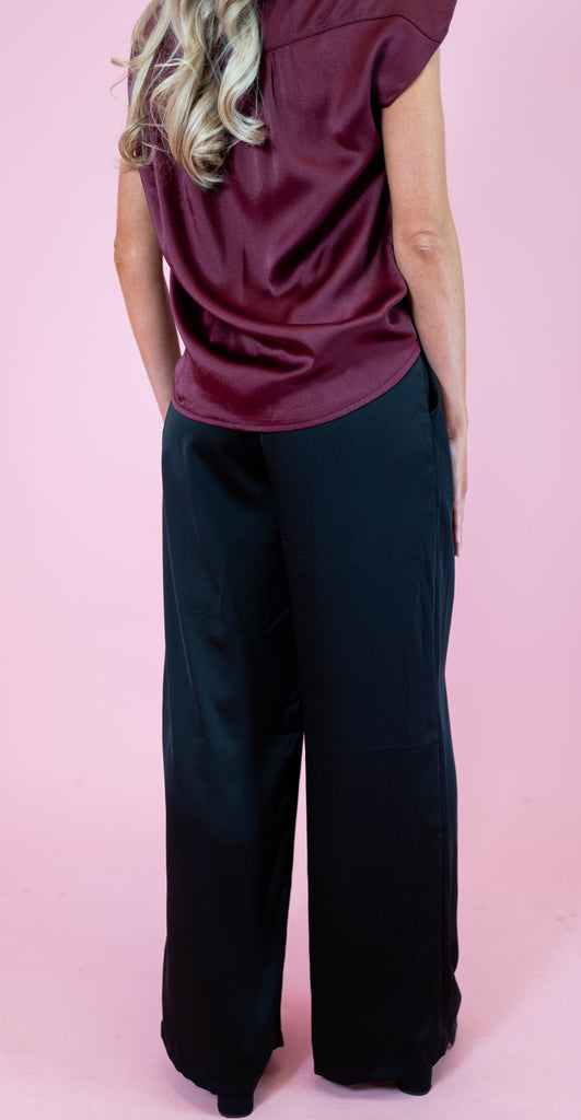 High Rise Satin Pleated Pants - Black